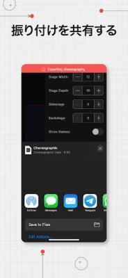 Choreographicは、あなたの創造性を最大限に引き出し、チーム全体で共有することを可能にします。ダンサーが振付の意図を深く理解できるよう、各フォーメーションに詳細なメモを追加する機能を搭載。これにより、複雑な表現も迷うことなく、全員がビジョンを共有できます。完成した振付は、あらゆるメッセージングアプリを通じて簡単に共有可能。「Choreographic Pro」の有無に関わらず、すべてのダンサーや振付師仲間と、あなたの傑作を瞬時に分かち合えます。Choreographicは、あなたのダンスパフォーマンスを次のレベルへと引き上げ、無限の可能性を解き放つための強力なパートナーです。Pro版では、さらに踏み込んだ機能で、あなたの創造性をどこまでも広げます。