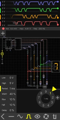 GeekBeat.tvが「とんでもないお宝を見つけた」と絶賛し、Design Newsからは「デザインを新たなレベルのインタラクティブ性へと昇華させる」と評価されたEveryCircuitは、単なる回路シミュレーターの枠を超えた体験を提供します。複雑な回路図を組み上げ、再生ボタンをタップするだけで、電圧、電流、電荷がダイナミックにアニメーションし、まるで生命を吹き込まれたかのようにその挙動を視覚化します。数式だけでは掴みきれない回路の真髄を、指先一つでリアルタイムに体感できるのです。アナログノブでパラメーターを瞬時に調整したり、指で自由に波形を描いて入力信号を生成したりと、これまでのPC用シミュレーションツールでは考えられなかったほどの深いインタラクションがここにあります。