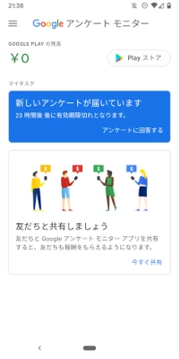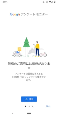 「Google アンケート モニター」は、Google サーベイ チームが開発しました。簡単なアンケートに答えて、Google Playで使えるクレジットを獲得しましょう。新しいアンケートが届くと通知されます。