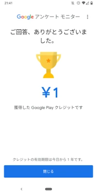 さらに、あなたの貴重な時間と意見には明確な報酬が用意されています。各アンケートへのご協力に応じて、最大100円相当のGoogle Play クレジットを獲得することが可能です。これらのクレジットは、アプリ、ゲーム、映画、書籍など、Google Play ストア内の豊富なデジタルコンテンツを楽しむための費用として自由にご利用いただけます。あなたの日常的な貢献が、デジタルエンターテイメントの世界を広げる素敵な副産物となるでしょう。
