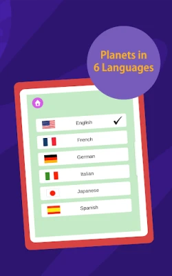 「Solar System for Kids - Learn Solar System Planets」の魅力は、その多言語対応にあります。英語だけでなく、フランス語、ドイツ語、イタリア語、日本語、スペイン語の計6カ国語で惑星の名前を学ぶことができ、30語以上の外国語に自然と触れる機会を提供します。各単語はクリアな発音とともに、文字を一つずつ読み上げるスペリング学習機能も搭載。さらに、可愛らしい惑星のパズルゲームを通じて、お子様の図形認識能力や問題解決スキルを養います。動く宇宙船や愉快な効果音、惑星のくすくす笑い声が、学習プロセスを一層楽しく、集中力を高める工夫が凝らされています。